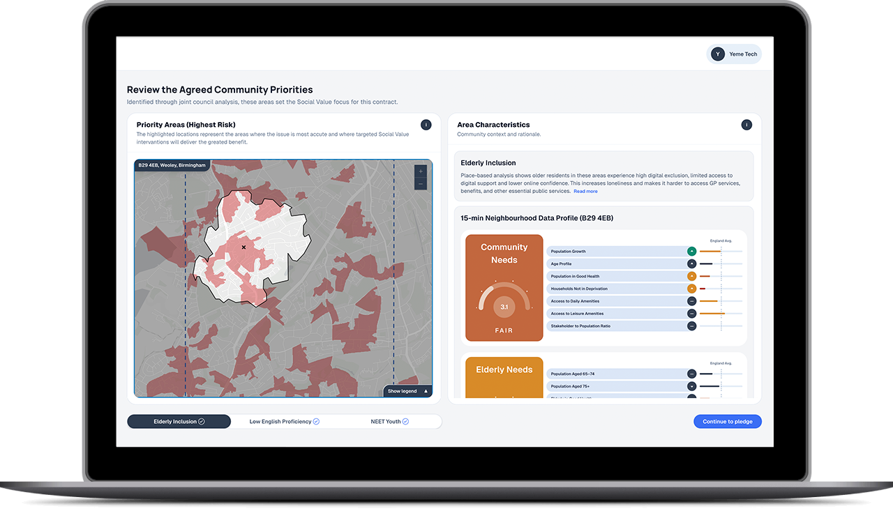 Objective, neighbourhood-level insight into community need.